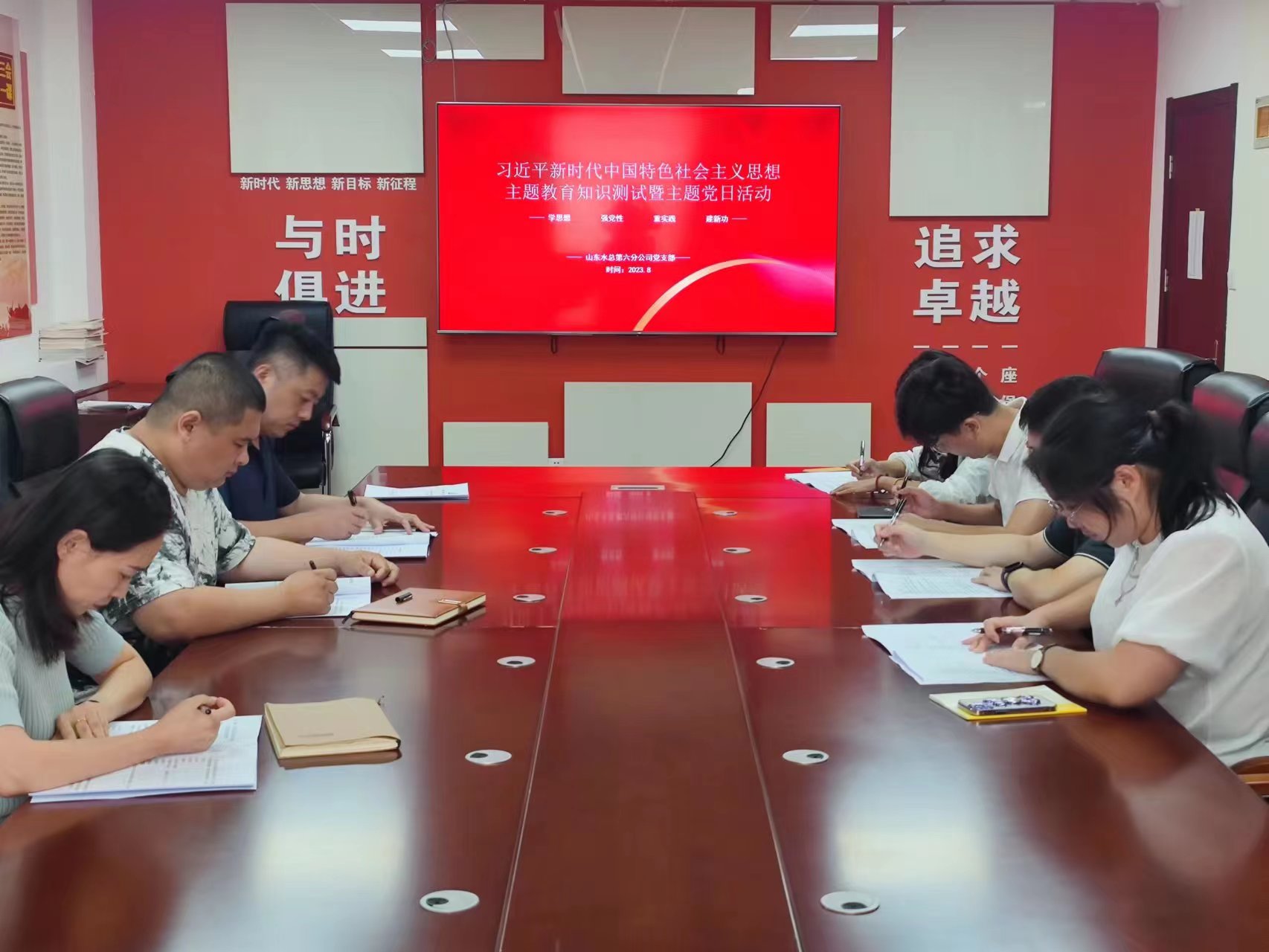 8月28日,第六分公司党支部组织党员干部职工开展学习贯彻习近平新时代中国特色社会主义思想主题教育知识测试暨主题党日活动。